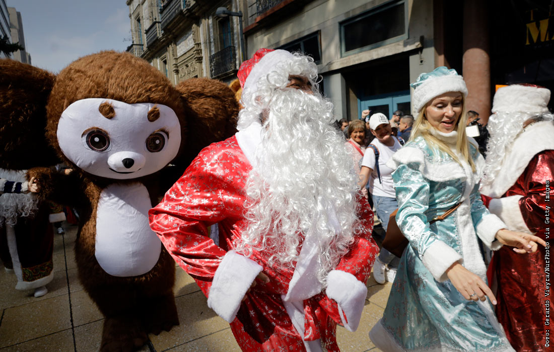 Парад российских Дедов Морозов и Снегурочек прошел в центре Мехико в преддверии праздников
