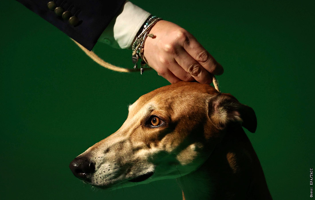 Борзая на выставке собак Crufts Dog Show в Бирмингеме, Великобритания