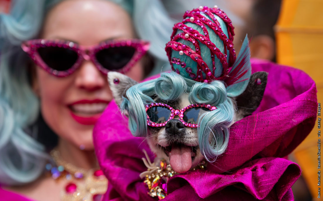 Участники ежегодного пасхального парада и фестиваля шляпок у собора Святого Патрика в Нью-Йорке