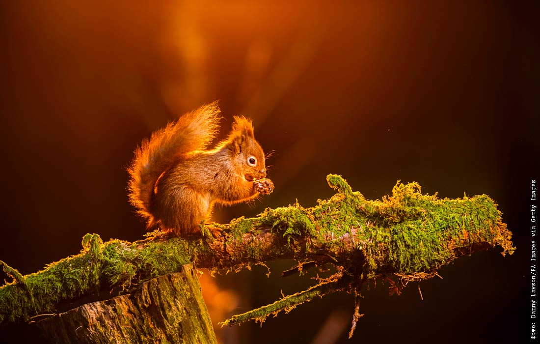 Рыжая белка в заповеднике в Йоркширских долинах на севере Англии