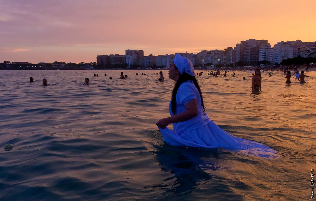 Религиозная церемония в честь покровительницы морей и океанов Йеманжи в Бразилии