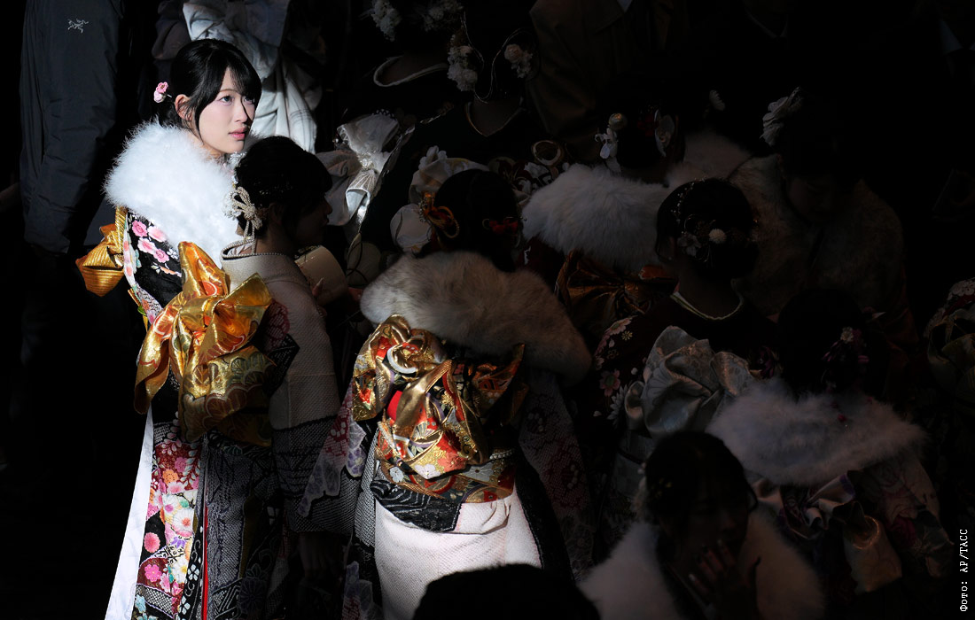 В Японии отметили День Совершеннолетия. В этот день все молодые люди, кому в текущем году исполнилось или исполнится 20 лет, принимают поздравления. Отмечающие совершеннолетие японки облачаются в кимоно ярких расцветок.