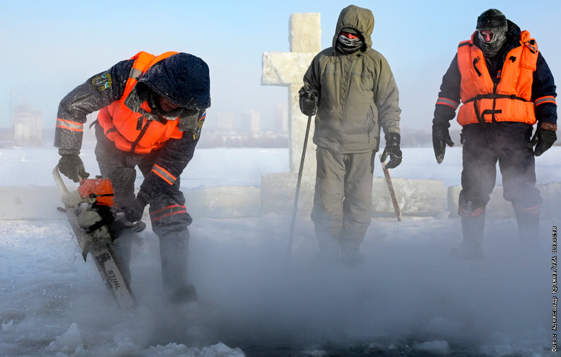 Подготовка проруби для Крещенских купаний в Новосибирске