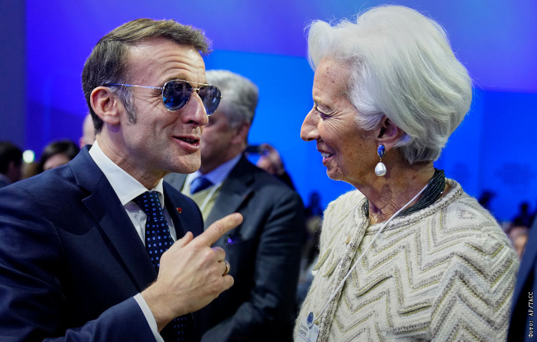 Всемирный экономический форум проходит в Давосе. На фото: президент Франции Эммануэль Макрон беседует с главой Европейского центрального банка Кристин Лагард.