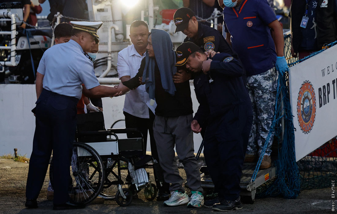 Паром с более чем 350 людьми на борту затонул в ночь на понедельник недалеко от острова на юге Филиппин. Спасено по меньшей мере 316 пассажиров, 15 признаны погибшими.