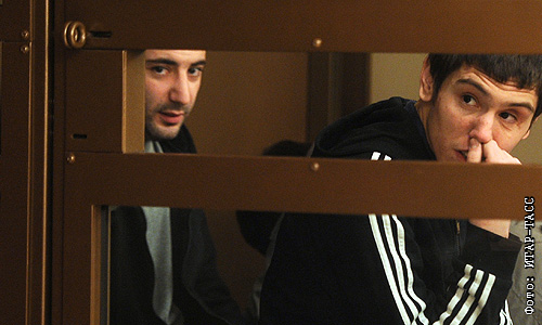 Ислам Яндиев и Башир Хамхоев (слева направо), обвиняемые по делу о теракте в аэропорту "Домодедово" 25 января 2011, в Московском областном суде.