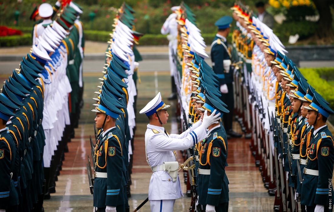 Почетный караул готовится к церемонии встречи председателя Европейского совета Антониу Кошты в Ханое, Вьетнам
