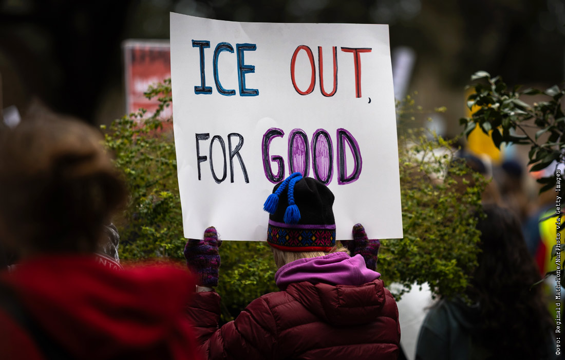 Жители Хьюстона вышли к зданию мэрии, чтобы выразить протест против действий Иммиграционной и таможенной службы США (ICE)