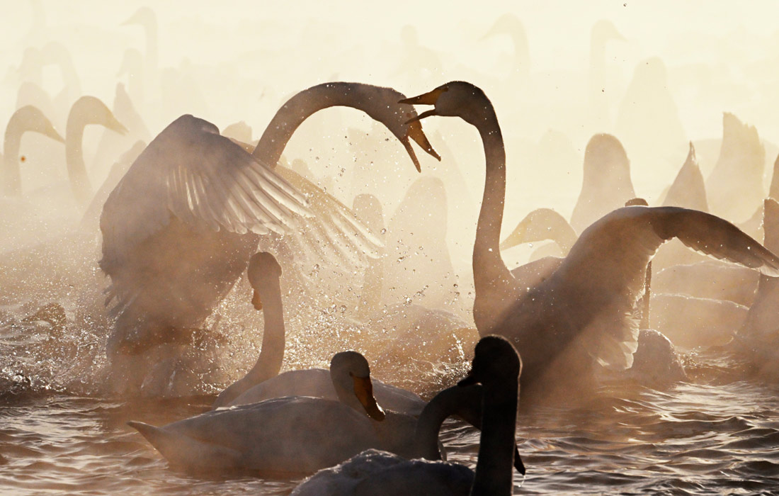 Ежегодно лебеди-кликуны прилетают на незамерзающее озеро Светлое в Алтайском крае, чтобы переждать суровую зиму
