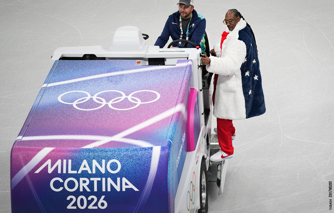 Рэпер Snoop Dogg во время подготовки льда на катке накануне зимних Олимпийских игр в Милане