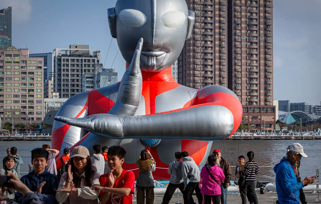Гигантская надувная фигура Ультрамена в Гаосюне на юге Тайваня
