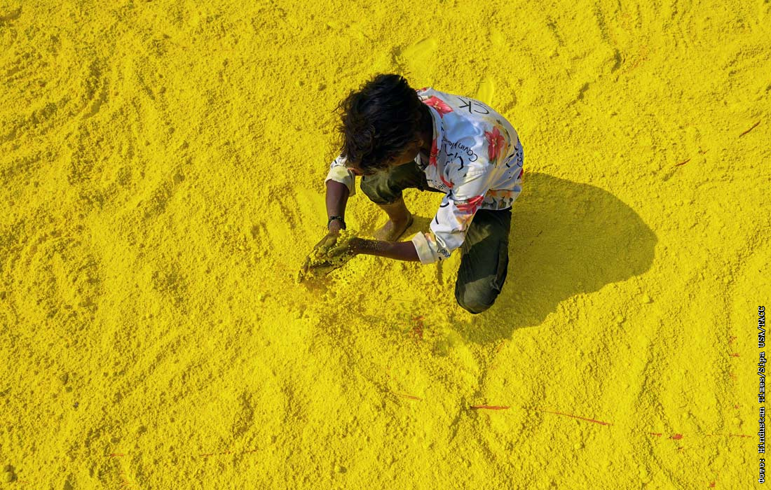Изготовление цветного порошка для фестиваля красок Холи в индийском Гургаоне