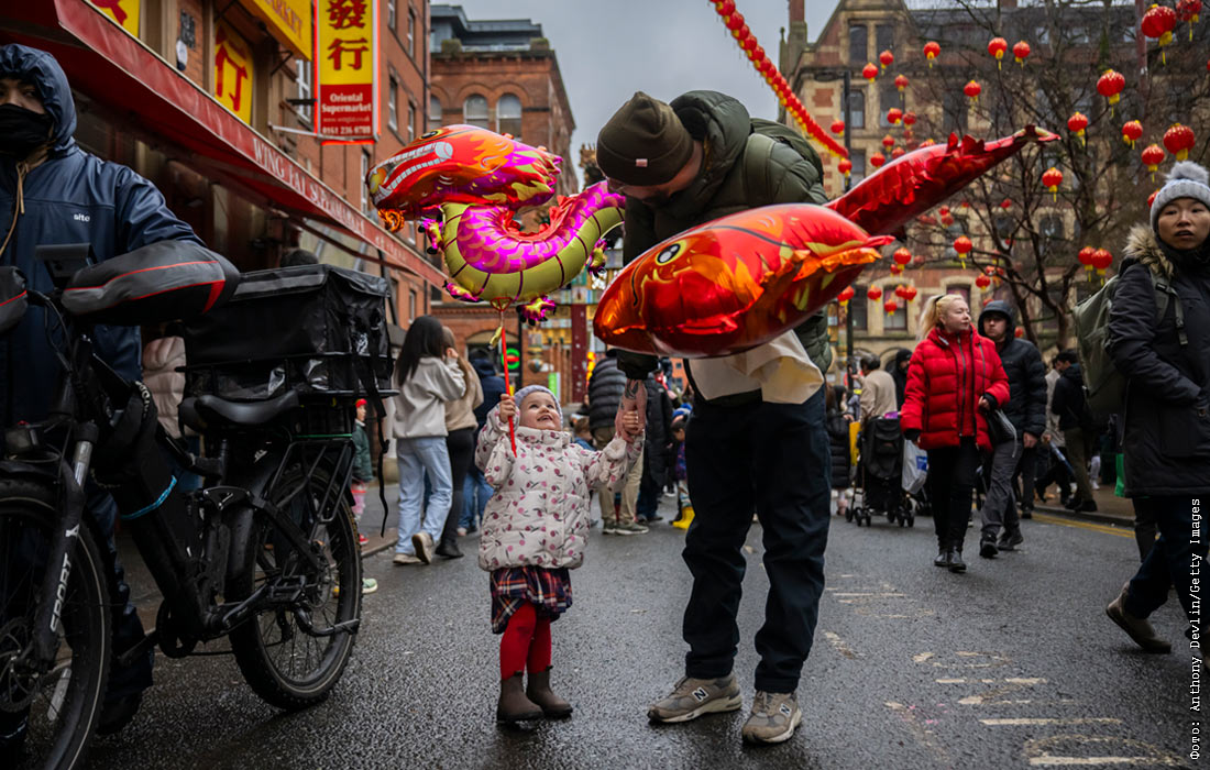 Празднование в китайском квартале Манчестера, Англия