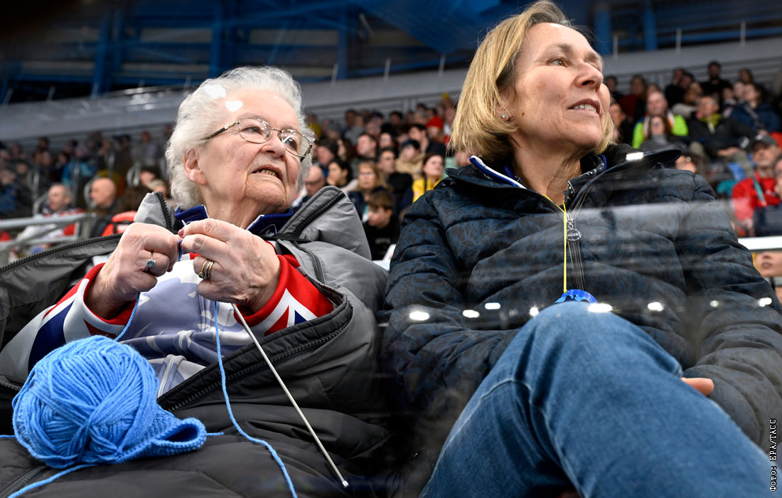 Болельщицы во время матча группового этапа мужского турнира по керлингу на зимних Олимпийских играх 2026 года в Италии
