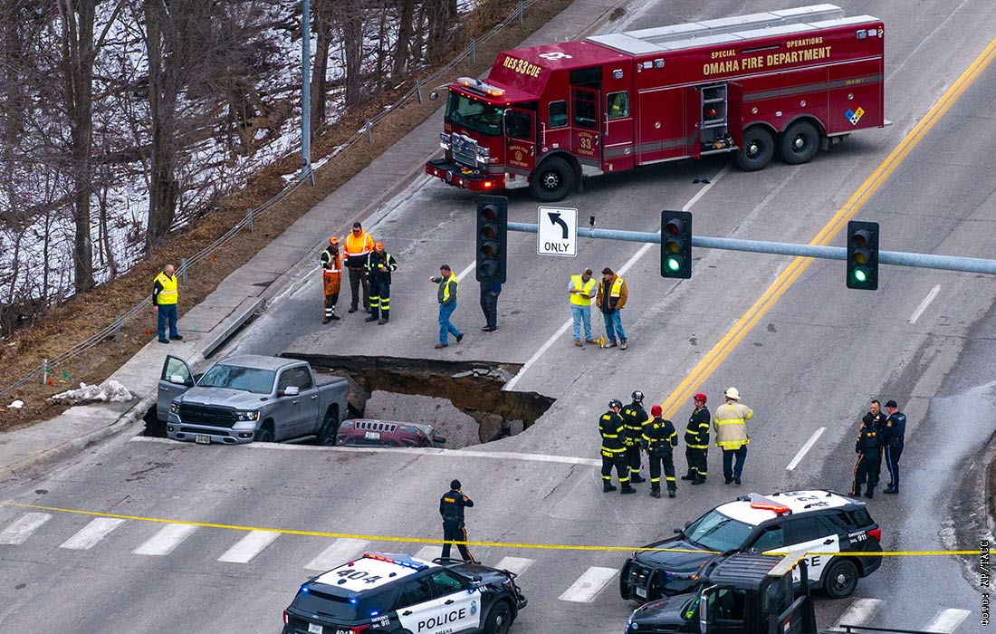 Два автомобиля провалились под землю в Омахе в американском штате Небраска