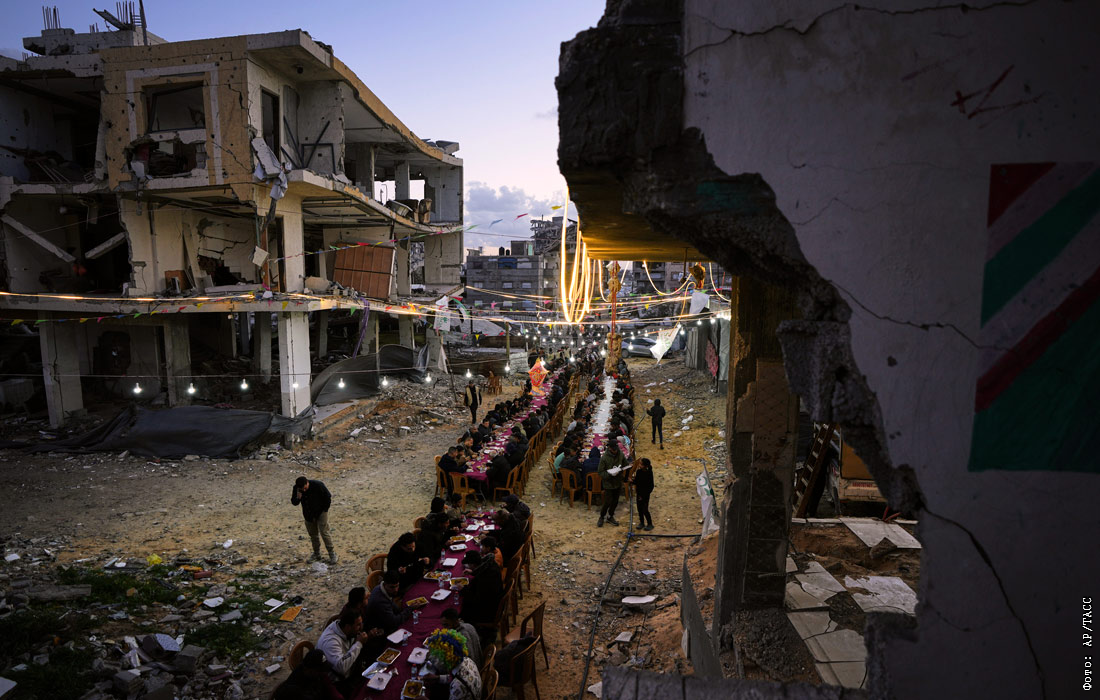 Ифтар среди разрушенных зданий в Газе