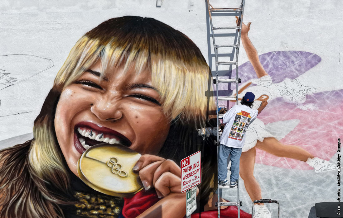 Мурал в честь олимпийской чемпионки по фигурному катанию Алисы Лю в Калифорнии