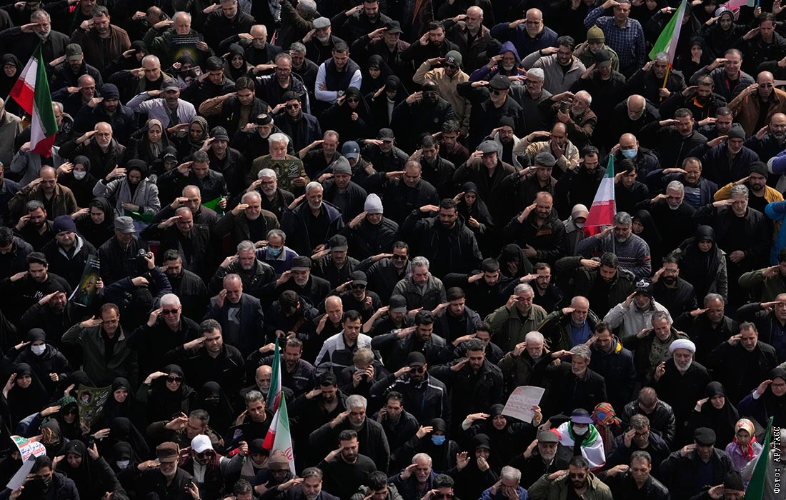 Церемония прощания с погибшими при ударах США и Израиля военными офицерами в Тегеране