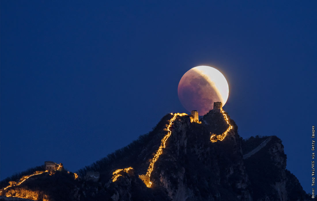 Лунное затмение над Великой Китайской стеной