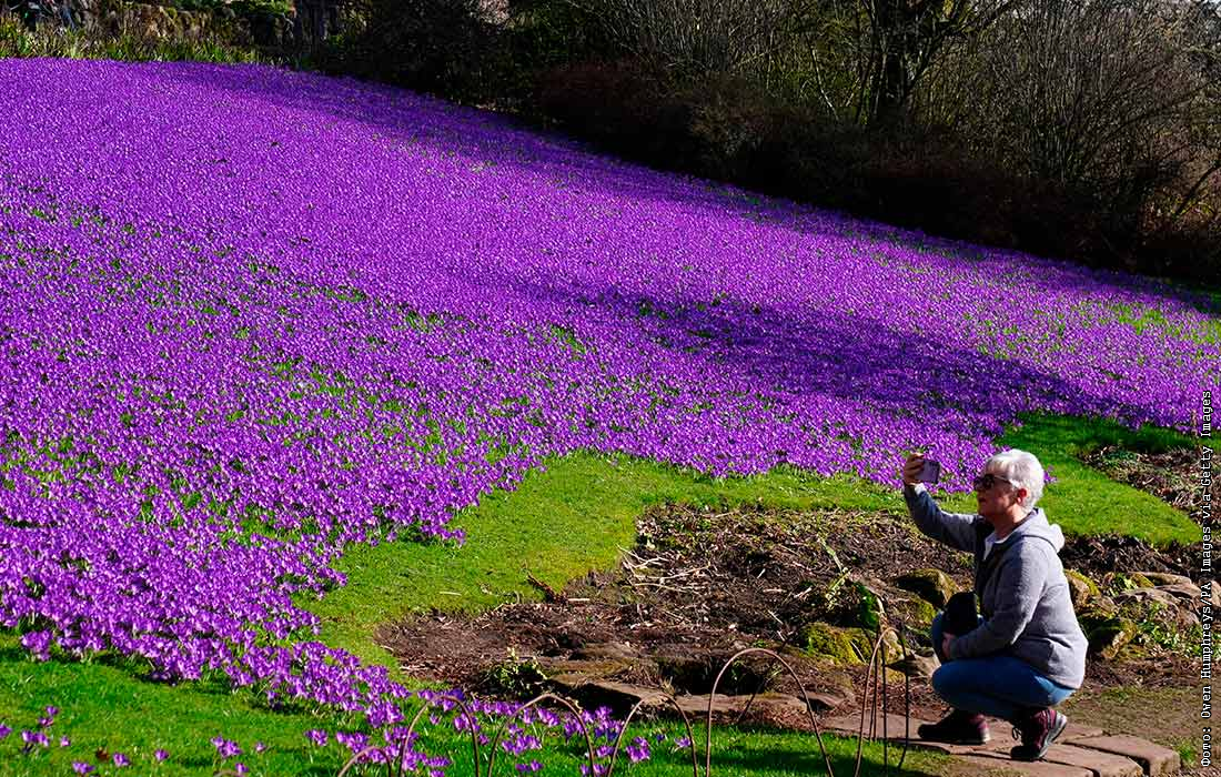 Цветущие крокусы в Королевских ботанических садах Кью в Лондоне