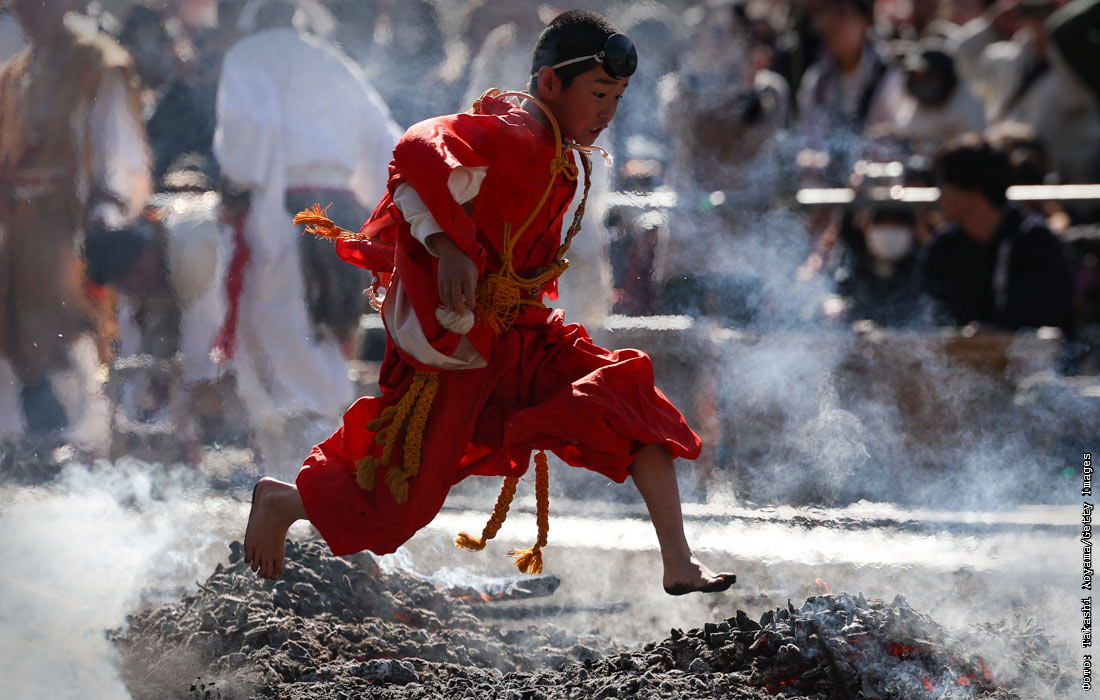 Фестиваль хождения по огню в храме Такао-сан-Якуо-ин в окрестностях Токио