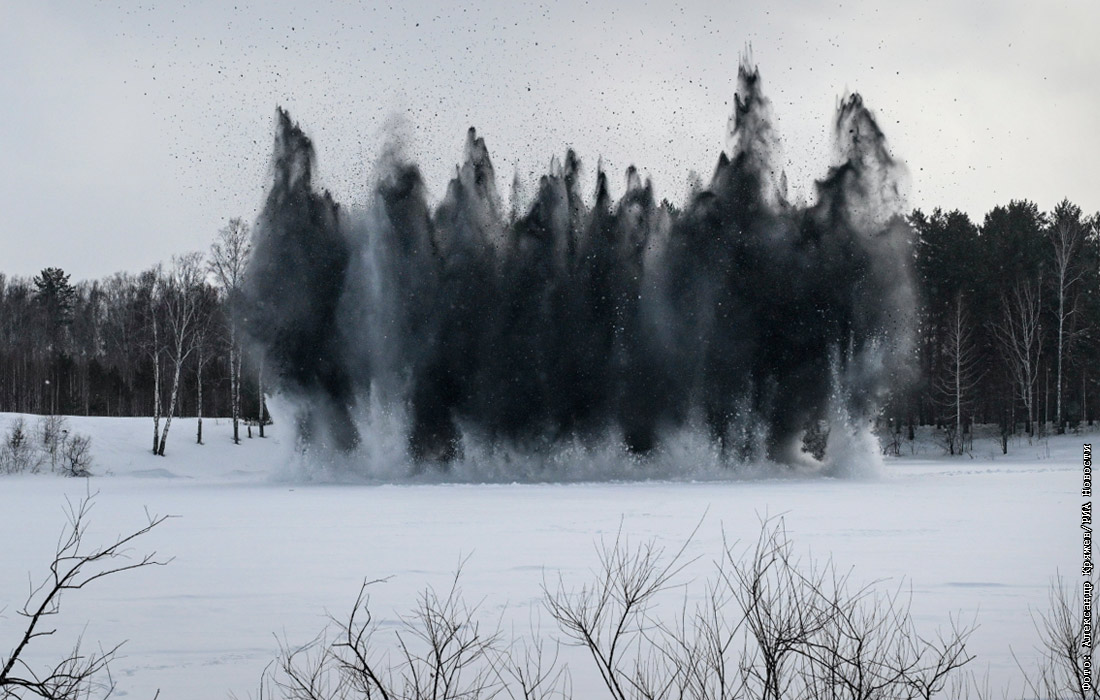 Подрыв льда на реке в Новосибирской области для предотвращения образования ледяных заторов в преддверии паводка