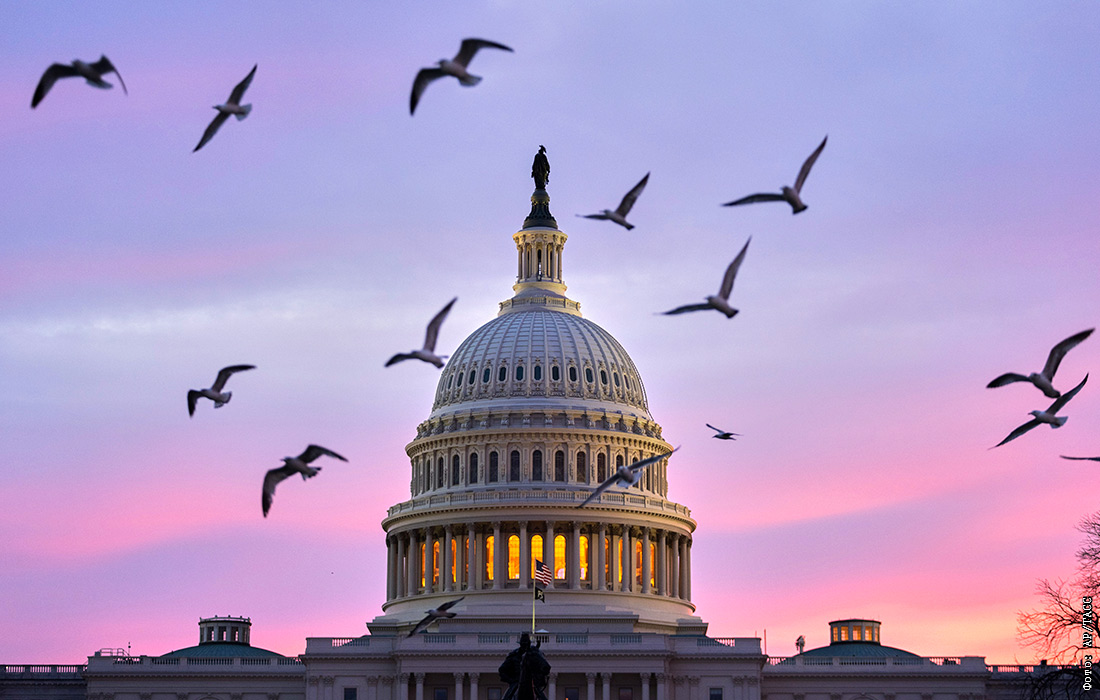 Рассвет над зданием Капитолия в Вашингтоне