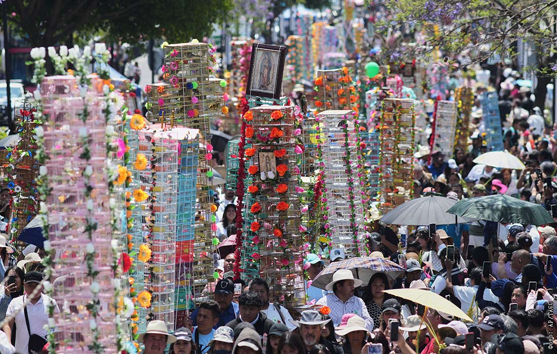 Ежегодное паломничество продавцов птиц к базилике Девы Марии Гваделупской в Мехико