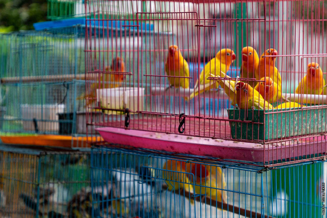 Продажа клеток и птиц в Саду птиц на улице Юэн в Гонконге