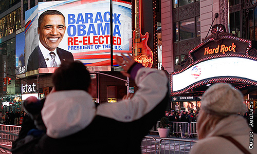 Действующий президент США Барак Обама остается на второй срок, заручившись поддержкой большинства выборщиков, но уступив республиканцу Митту Ромни по количеству избирателей.