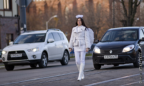 Акция сотрудников ГИБДД "Ангел на дорогах" в Калининграде.