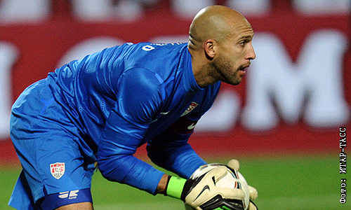 Вратарь сборной США Тим Ховард во время товарищеского матча по футболу: Россия – США.