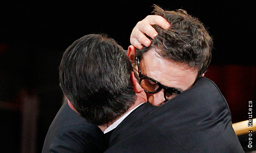 "Оскар-2012". Жан Дюжарден целует Мишеля Хазанавичуса.