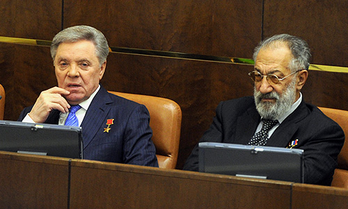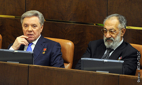 Члены Совета Федерации РФ Борис Громов и Артур Чилингаров на заключительном заседании осенней сессии Совета Федерации РФ.