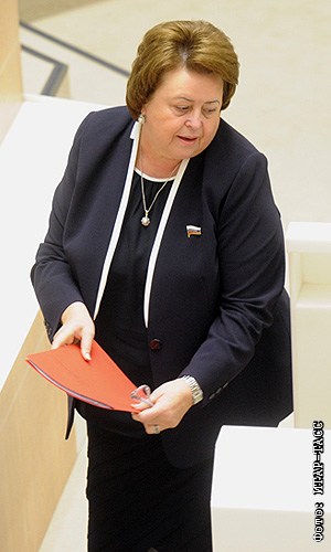 Председатель Комитета Совета Федерации по науке, образованию, культуре и информационной политике Зинаида Драгункина на заключительном заседании осенней сессии Совета Федерации РФ.