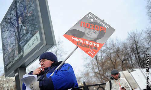 В центре Москвы проходит акция протеста против "закона Димы Яковлева", который запрещает американцам усыновлять российских сирот.