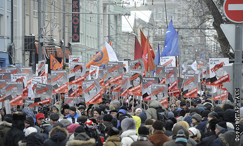 Согласованное с властями оппозиционное шествие с заявленной численностью до 20 тыс. человек проходит в Москве 13 января