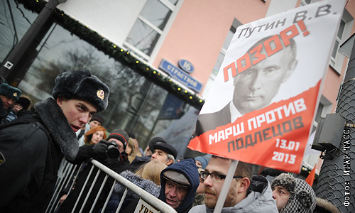 Согласованное с властями оппозиционное шествие с заявленной численностью до 20 тыс. человек проходит в Москве 13 января