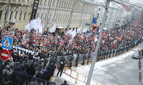 Согласованное с властями оппозиционное шествие с заявленной численностью до 20 тыс. человек проходит в Москве 13 января
