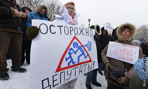 Участники митинга против запрета на усыновление российских сирот гражданами США.