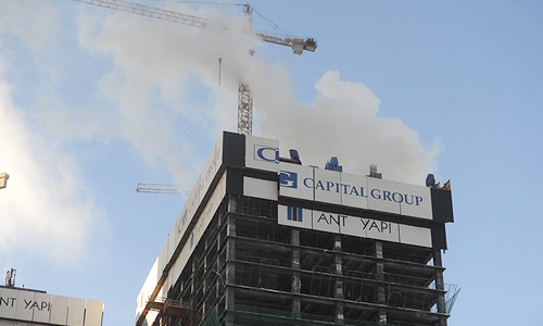 В одной из недостроенных башен "Москва-Сити" возник пожар