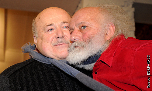 Художественный руководитель театра Et Cetera Александр Калягин и основатель театра "Лицедеи" Вячеслав Полунин (слева направо) в "Гоголь-центре", который открылся на базе московского драматического театра им. Гоголя под руководством Кирилла Серебренникова после реставрации.
