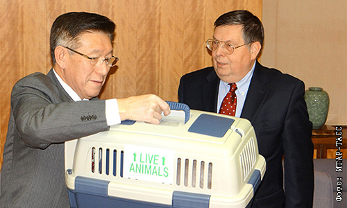 Губернатору японской префектуры Акита вручен сибирский кот в подарок от президента РФ.