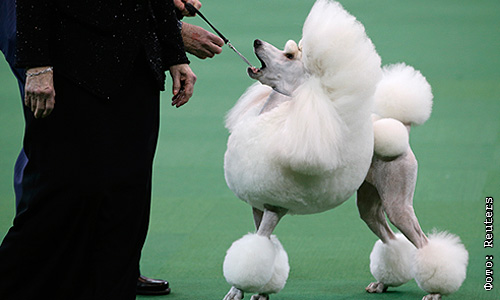 Собака породы стандартный пудель. Всего на выставке будет представлено 2700 собак, в том числе двух новых пород: триин-уокер кунхаунд и рассел-терьер.