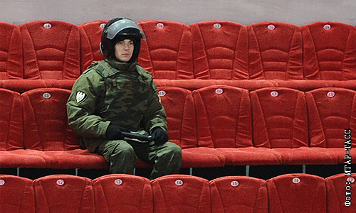 Трибуны стадиона "Сокольники" во время матча чемпионата КХЛ: "Спартак" (Москва) – ЦСКА (Москва).