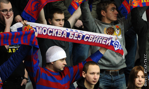 Болельщики ЦСКА на матче чемпионата КХЛ: "Спартак" (Москва) – ЦСКА (Москва).