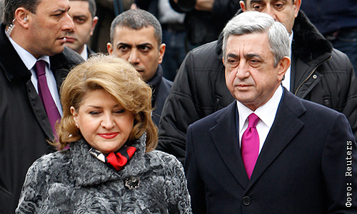 Президент Армении Серж Саргсян c супругой во время голосования на одном из избирательных участков в день выборов президента республики.