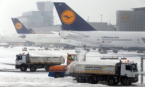 Днем во вторник из-за сильного снегопада приостановил работу крупнейший в Германии аэропорт Франкфурта-на-Майне. Утром в аэропорту были отменены 200 из 1238 запланированных на вторник рейсов. В их числе был отменен рейс авиакомпании Lufthansa LH 1446, который должен был прибыть в Москву в 16:45 мск, а также обратный рейс из Москвы во Франкфурт той же авиакомпании, который должен был вылететь в 17:35.