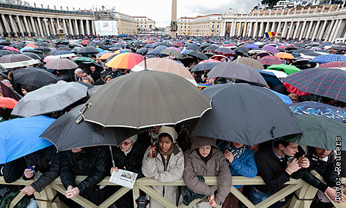 На площади Святого Петра собрались многочисленные верующие, надеющиеся, что за среду удастся избрать преемника отрекшегося от престола Бенедикта XVI.