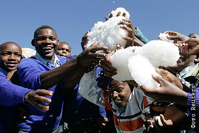 Сильнейший град, обрушившийся на кенийскую деревню Нуахуруру, покрыл местность ледяной крошкой, очень похожей на настоящий снег